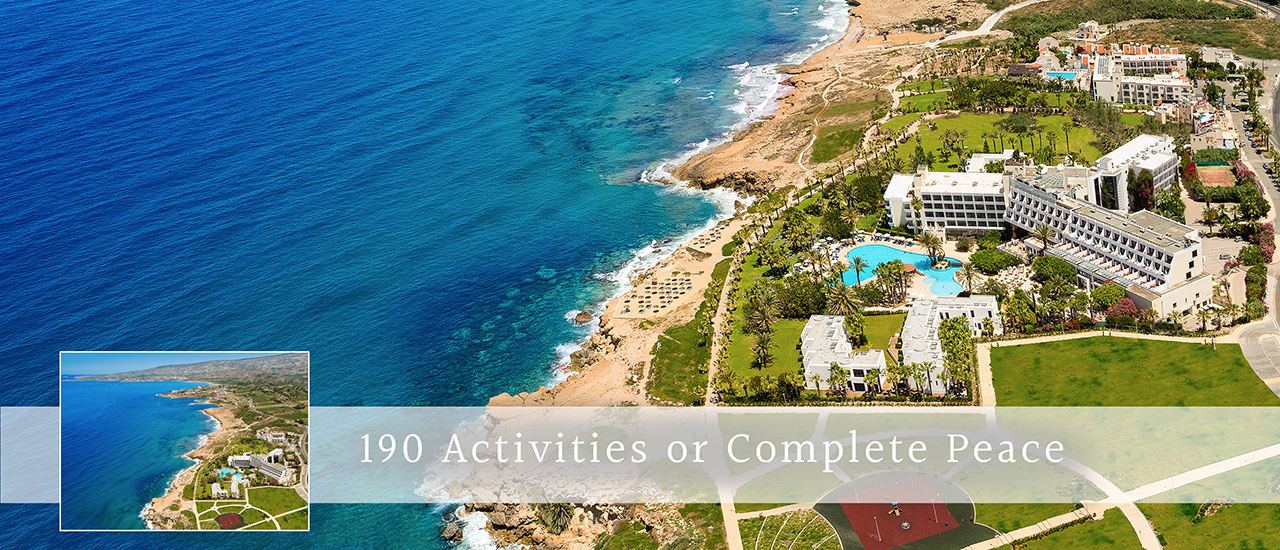 The hotel offers guests a broad range of daily activities, with separate clubs for infants and the older children, teenagers and adults; yet throughout the hotel there are special places, well away from the hustle and bustle, where guests may enjoy doing little or nothing at all, sunbathing under the palms in the Mediterranean breeze.