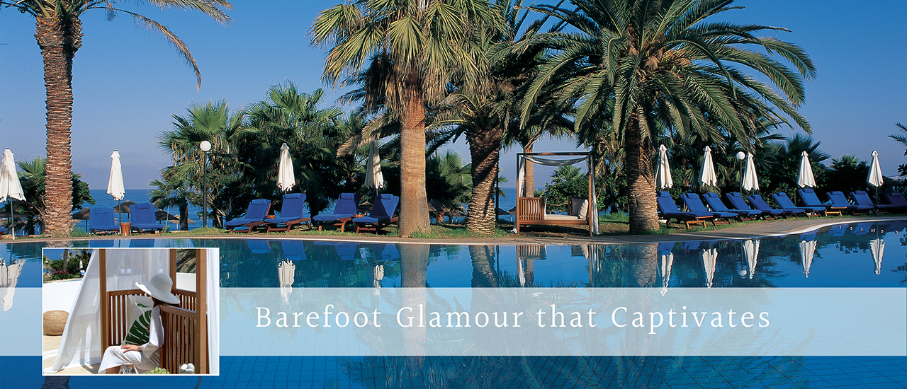 The hotel's location, facing west, all but guarantees stunning wedding photography in its luxuriant gardens with views over the Bay of Paphos. An experienced weddings coordinator will help to choose the right venue for the occasion, whether it is beneath giant rubber trees facing the sea or in the picturesque precincts of our Greek chapel.